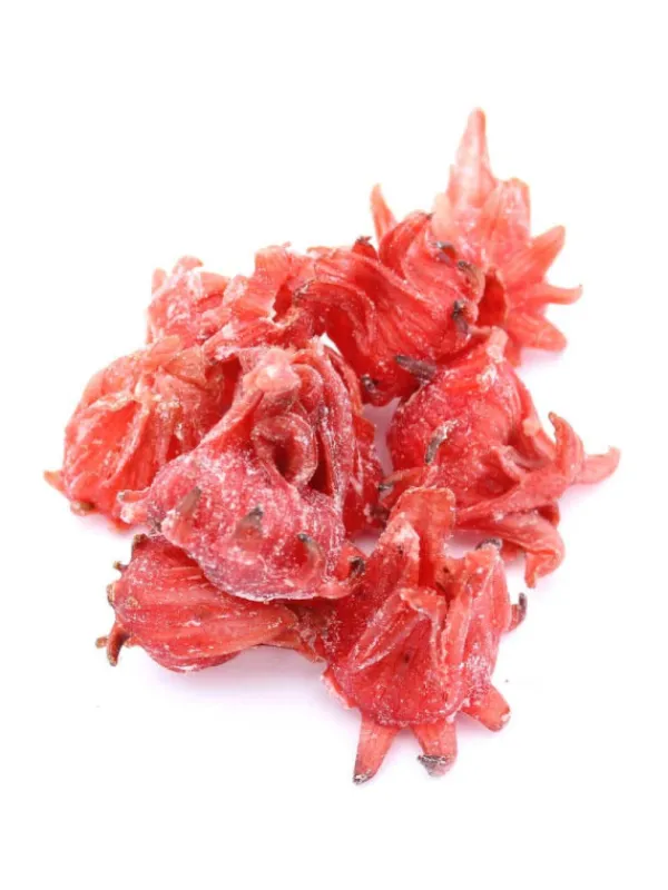 Il s’agit de délicieuses fleurs d’hibiscus sucrées et séchées, qui se mangent directement comme un fruit sec, ou s’utilisent dans l’agrémentation de desserts ou de boissons.